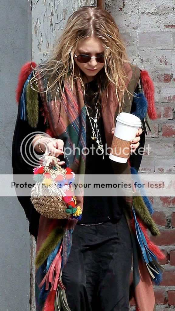 Jag känner att jag bara måste ha en sån scarf/halsduk/poncho-sak som Mary-Kate har på bilden.